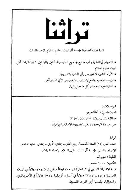 (٣) أنظر : مصادر حديث الثقلين ، بألفاظه المختلفة في مقال «أهل البيت في المكتبة العربية» المنشور في مجلة (تراثنا) العدد (١٥) السنة الرابعة ، ١٤٠٩ / ص ٨٤.